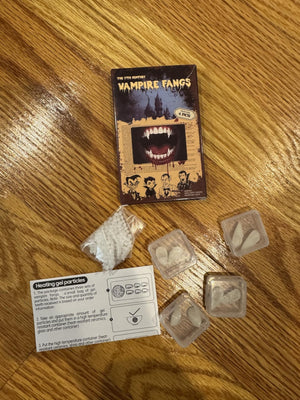 Simply soften the adhesive beads in hot water, mold them to fit your teeth, and attach the fangs in seconds for a secure fit.